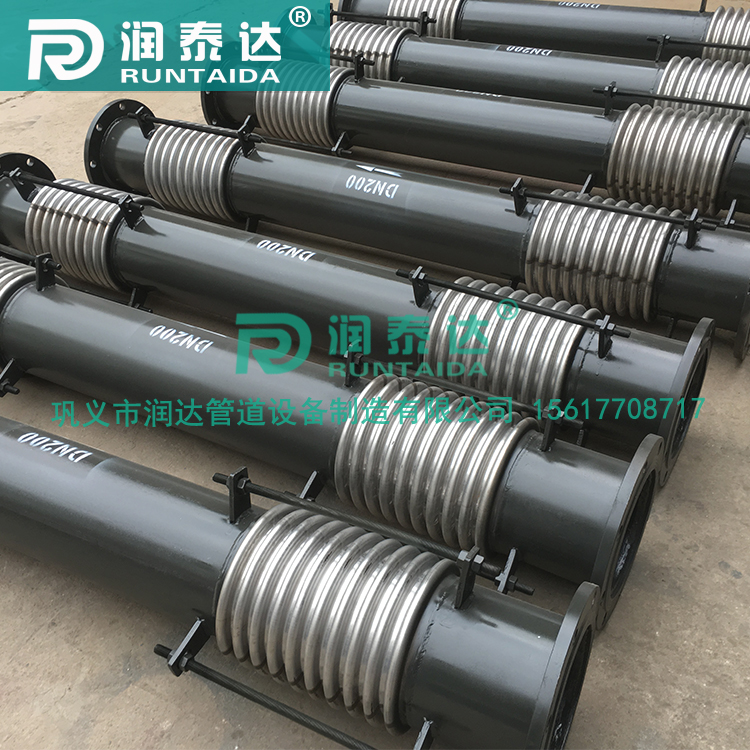 軸向型復式拉桿波紋補償器主要利用橡膠的獨特性能。如高彈性、高氣密性、耐介質性和耐候性及耐輻射性等。采用高強度、冷熱穩定性強的聚酯簾布斜交與之復核后經高壓、高溫模壓交聯而成。內部致密度高,能承受較高壓力,彈性變形效果優異。產品結構設計斷面弧高、曲線長、具有較大的多向功能。特別適用于地質條件復雜、沉降幅度大和管道運行中冷熱變化頻繁導致管道損壞的場所。利用橡膠的彈性滑動轉移和變形機械力的傳熱散逸功能有效地消除泵、閥及管道自身的位移物理破壞。因橡膠屬不良傳導材料,所以它又是一種良好的降低震動和噪聲傳遞的理想環保產品。該產品設計內壁光滑,經實際測試,對介質的流速,流量無任何影響,并且永不生銹?;究梢悦獬行н\動期內的維修。