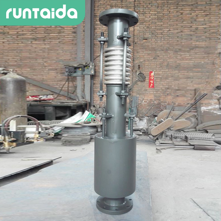 軸向復式波紋補償器由兩個或多個波紋管串聯在一起,在波紋管外有能夠保證波紋管在軸向移動時不致失穩的外罩。這種膨脹節可吸收較大的軸向位移。對于這類波數較多的膨脹節而言,外罩即是一種保護裝置以保證膨脹節在運輸或安裝過程中不損壞波紋管。而且,又保證了膨脹節工作時的穩定性,也是由于外罩的存在,對于膨脹節的保溫操作也變得簡單易行。